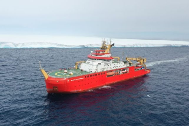 Iceberg A-23A and the British Antarctic Survey research vessel RSS David Attenborough in December 2023. (British Antarctic Survey)