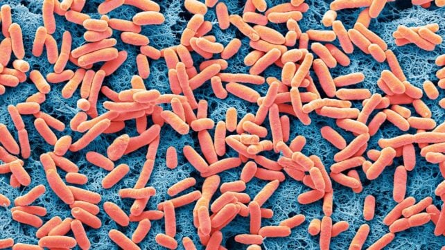 Coloured scanning electron micrograph of Escherichia coli, a common rod-shaped bacterium. (Steve Gschmeissner/Science Photo Library/Getty Images)