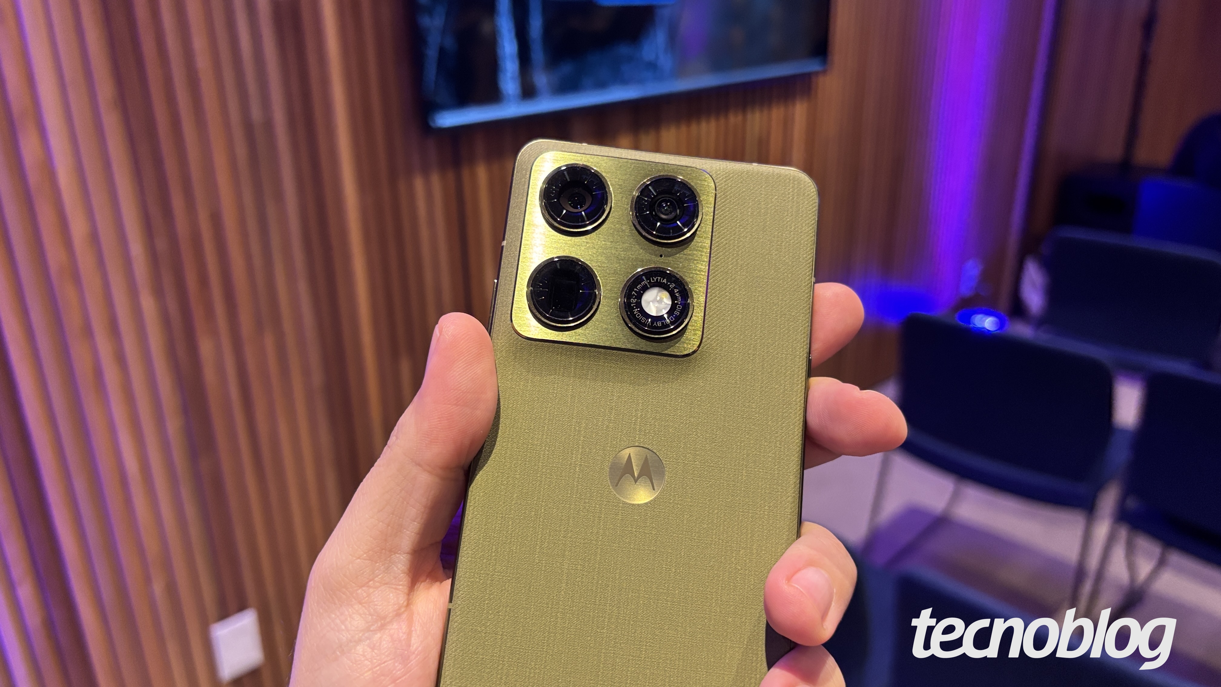 Lançado em 2026, o Motorola Signature apresenta um conjunto triplo de câmeras traseiras (grande-angular, ultra-angular e teleobjetiva de 50 MP) e uma câmera frontal de 50 MP.