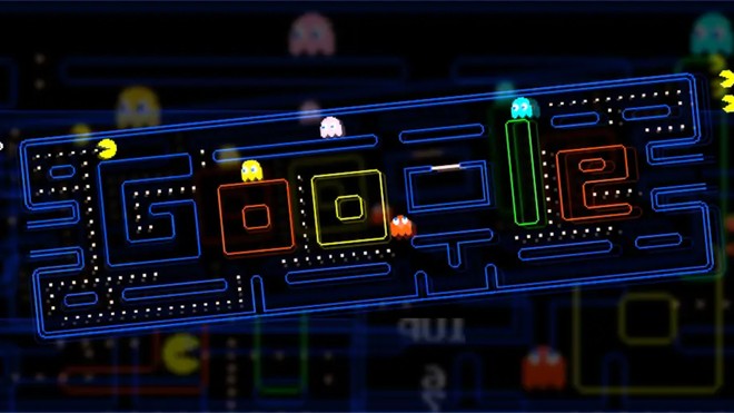 O Doodle traz o jogo clássico da Bandai Namco com oito fases especiais, começando pelo labirinto azul assombrado pelos fantasmas Blinky, Inky, Pinky e Clyde. Para passar a próxima fase você deve coletar todos os pontos brancos sem ser pego por eles.