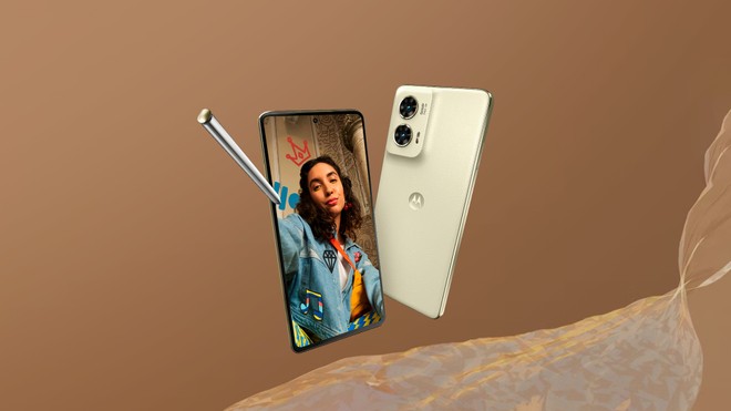 As fotos revelam que o Moto G Stylus (2026) terá uma tela plana com bordas finas, enquanto a traseira adota acabamento em textura de couro na cor bege. O módulo quadrado abriga três câmeras com lentes proeminentes, reforçando um visual mais moderno e sofisticado em relação ao antecessor.