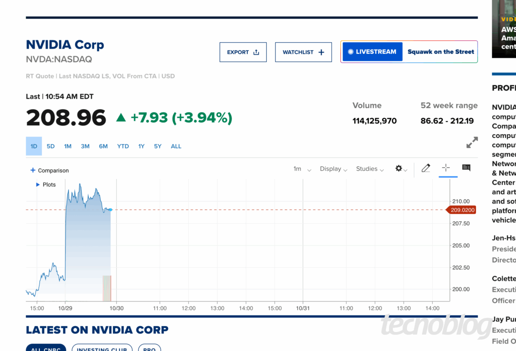 Além disso, a Nvidia também anunciou o investimento de US$ 1 bilhão na Nokia (R$ 5,3 bilhões). Os recursos serão destinados a projetos de inteligência artificial e conectividade, com especial interesse no desenvolvimento do 6G.