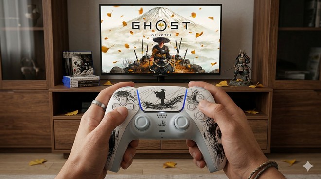 Sony prepara nova versão do DualSense com tema de Ghost of Yotei para PS5