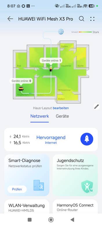 Here’s something positive: The setup was possible without a Huawei account. Nevertheless, the basic problem remains: A mesh system is a convenience product. If the first step already consists of detours, this is difficult to sell to the mainstream — especially for a manufacturer that already causes a polarizing opinion when it comes to data protection and trust.